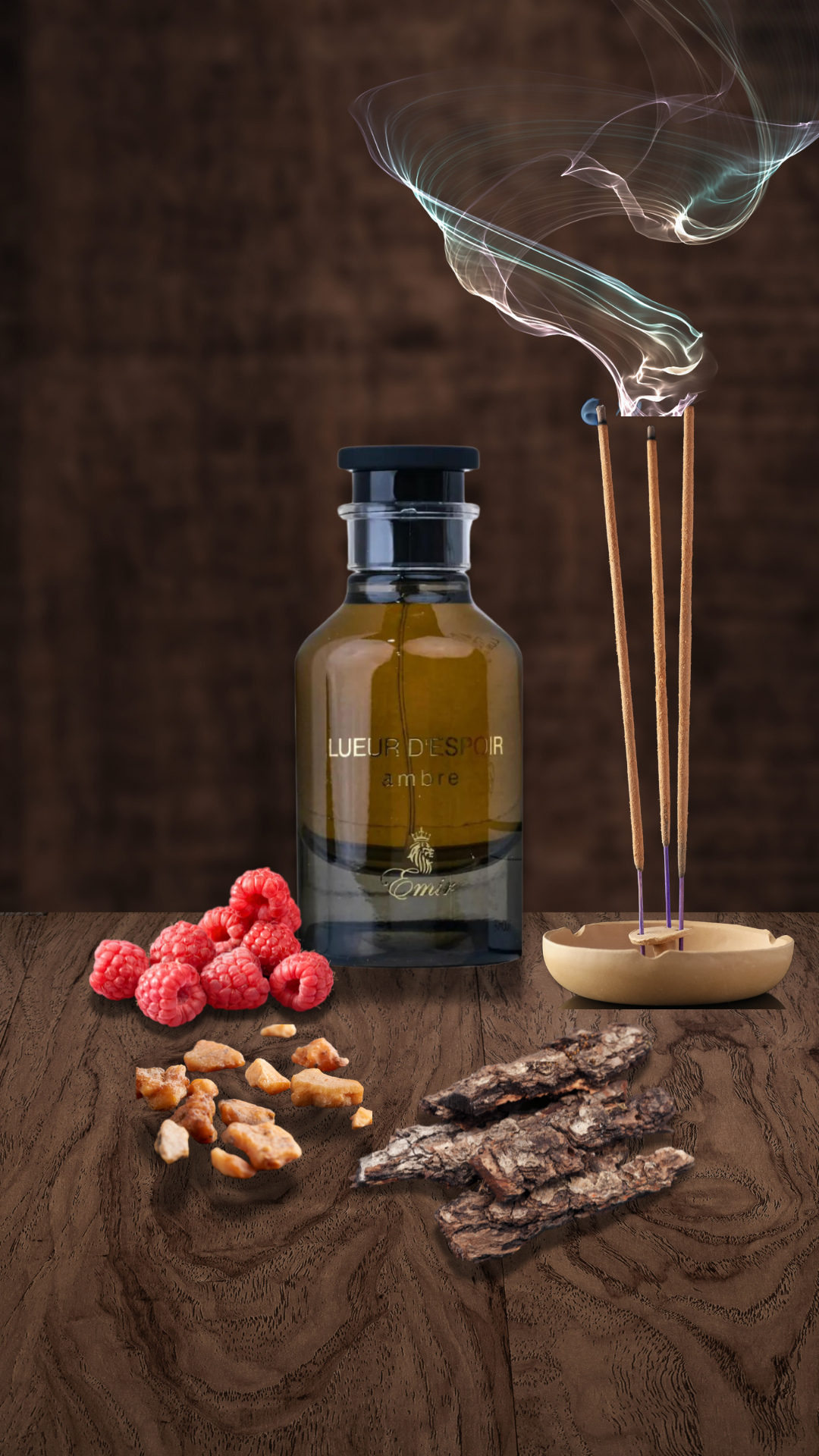 Notes principales : Oud, Géranium, Framboise, Rose, Bois d’Ambre, Benjoin, Bouleau, Encens, Safran.